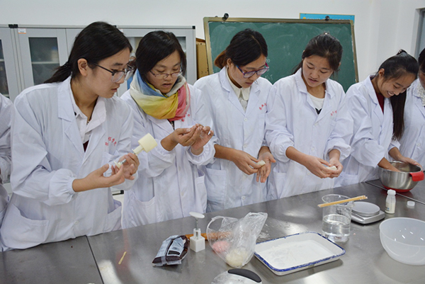 在制作过程中,指导教师对各种原辅料及工具的性能、使用方法、注意事项等进行了详细的讲解并对制作过程进行了演示,手把手对学生进行指导。在老师的指导下,同学们制作出了一个个精美的点心。此次培训,提高了社团成员对食品加工的兴趣,并掌握了部分技能,为使下一步更多的社团成员参与到活动中来奠定了基础。(孙显慧供稿)
